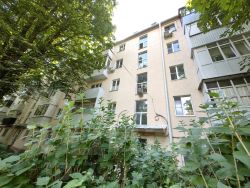 Тихий зеленый двор, парковка во дворе.