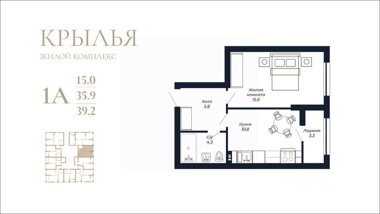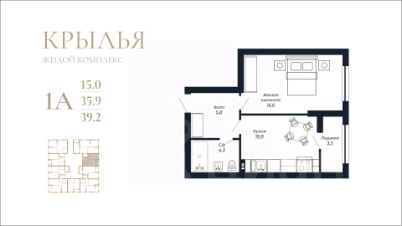 Общая площадь39,2 м²