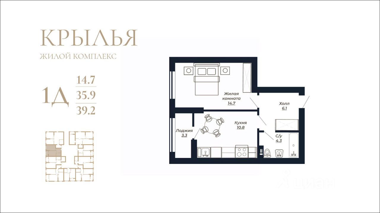Общая площадь39,2 м²