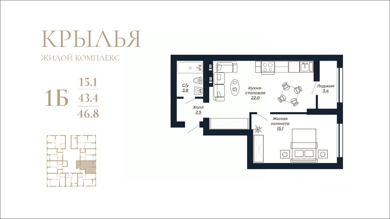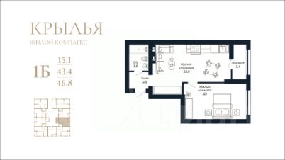 Общая площадь46,8 м²