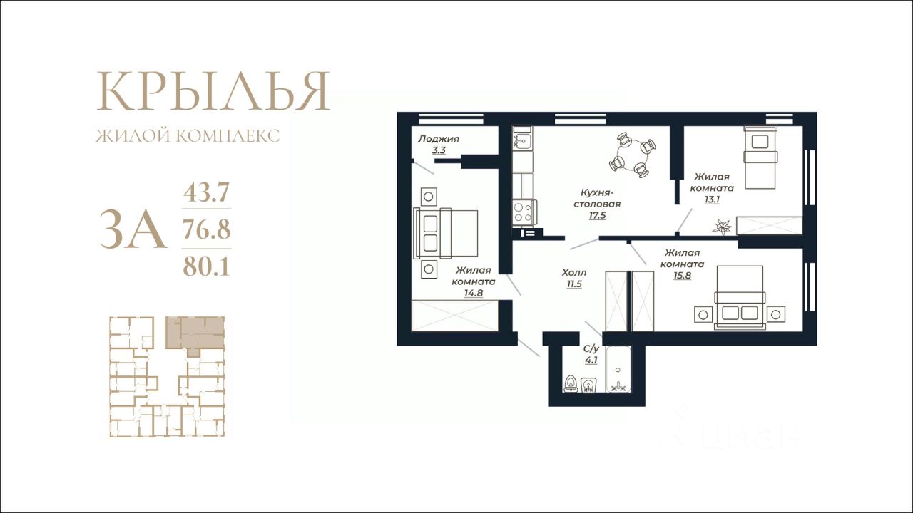 Общая площадь80,1 м²