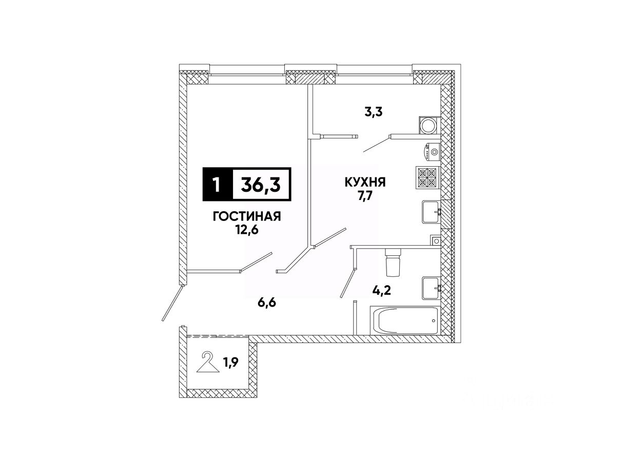 Общая площадь36,3 м²