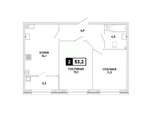 Общая площадь53,2 м²