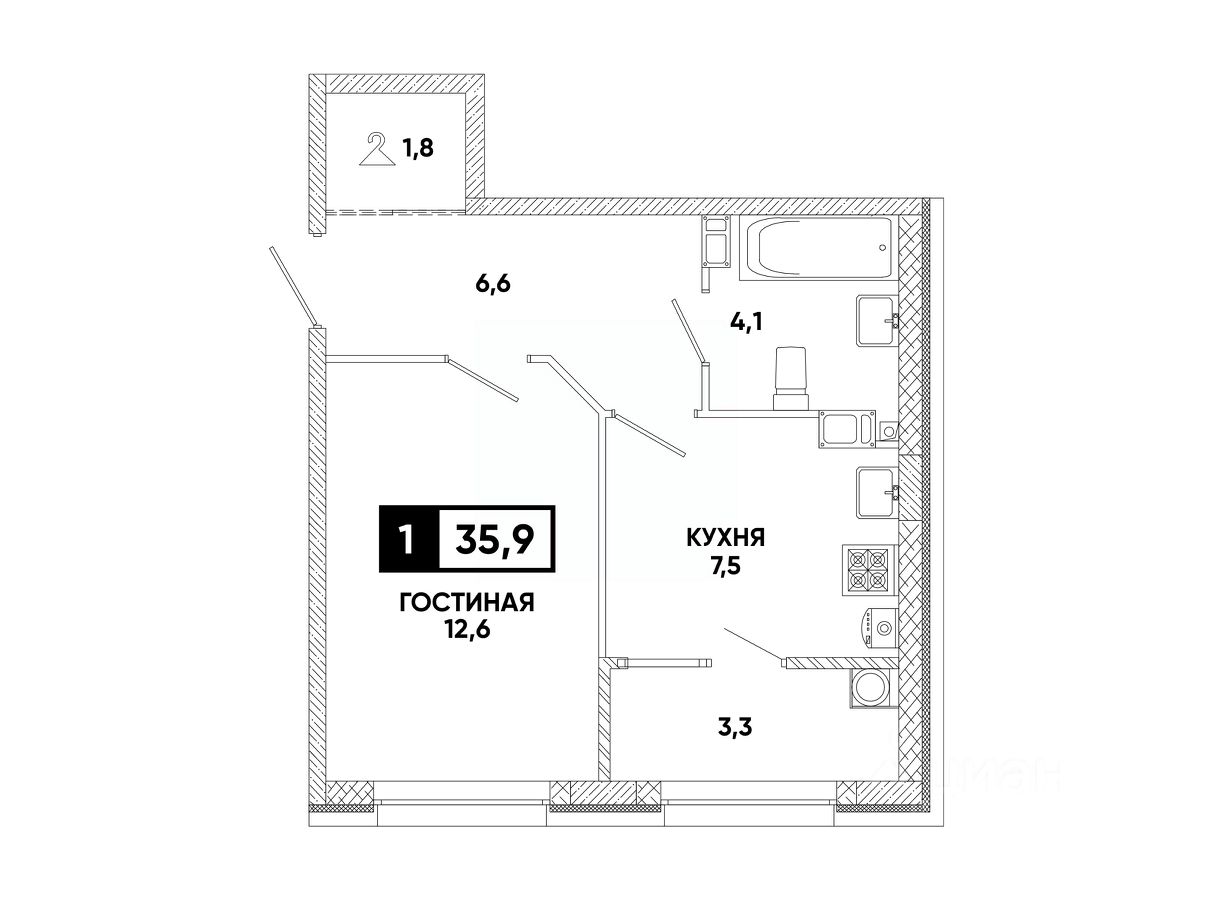 Общая площадь35,9 м²