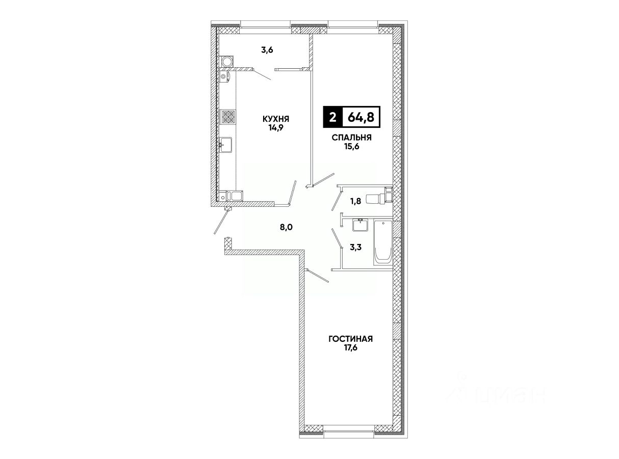 Общая площадь64,8 м²