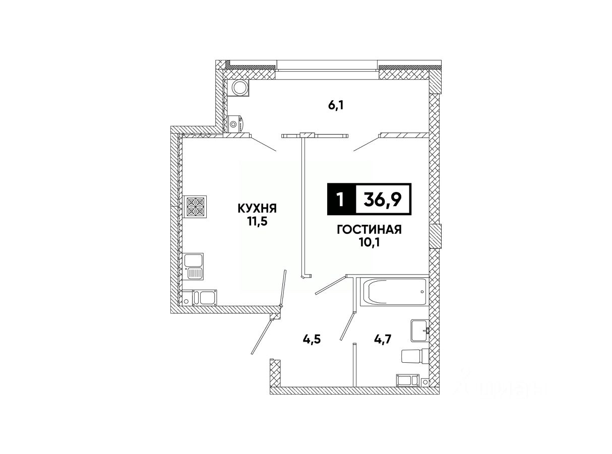 Общая площадь36,9 м²