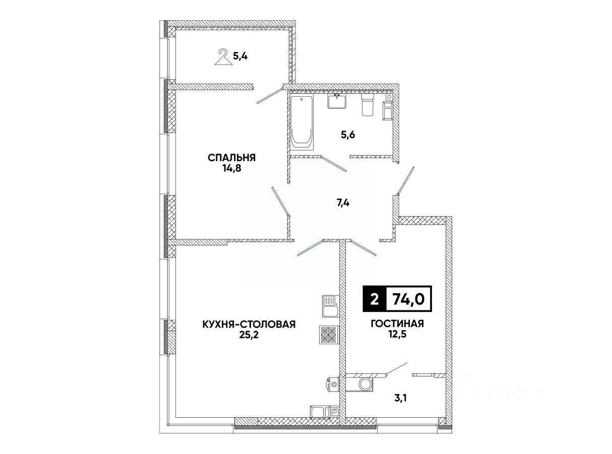 Общая площадь74 м²