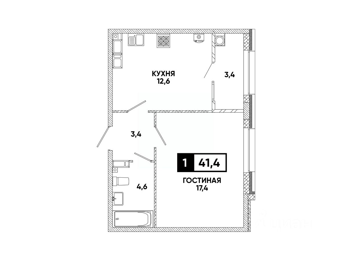 Общая площадь41,4 м²