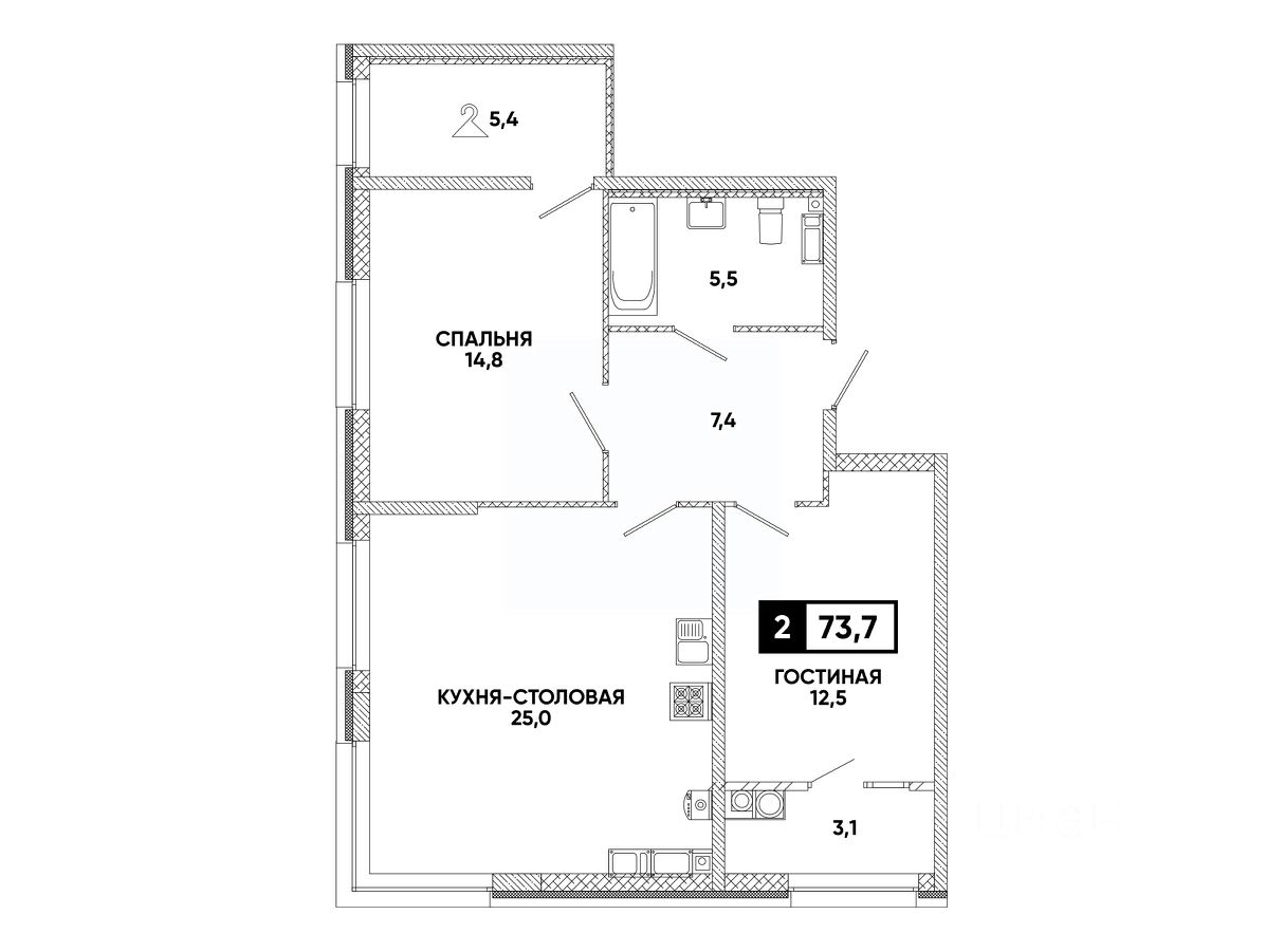 Общая площадь73,7 м²