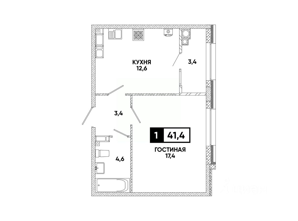 Общая площадь41,4 м²