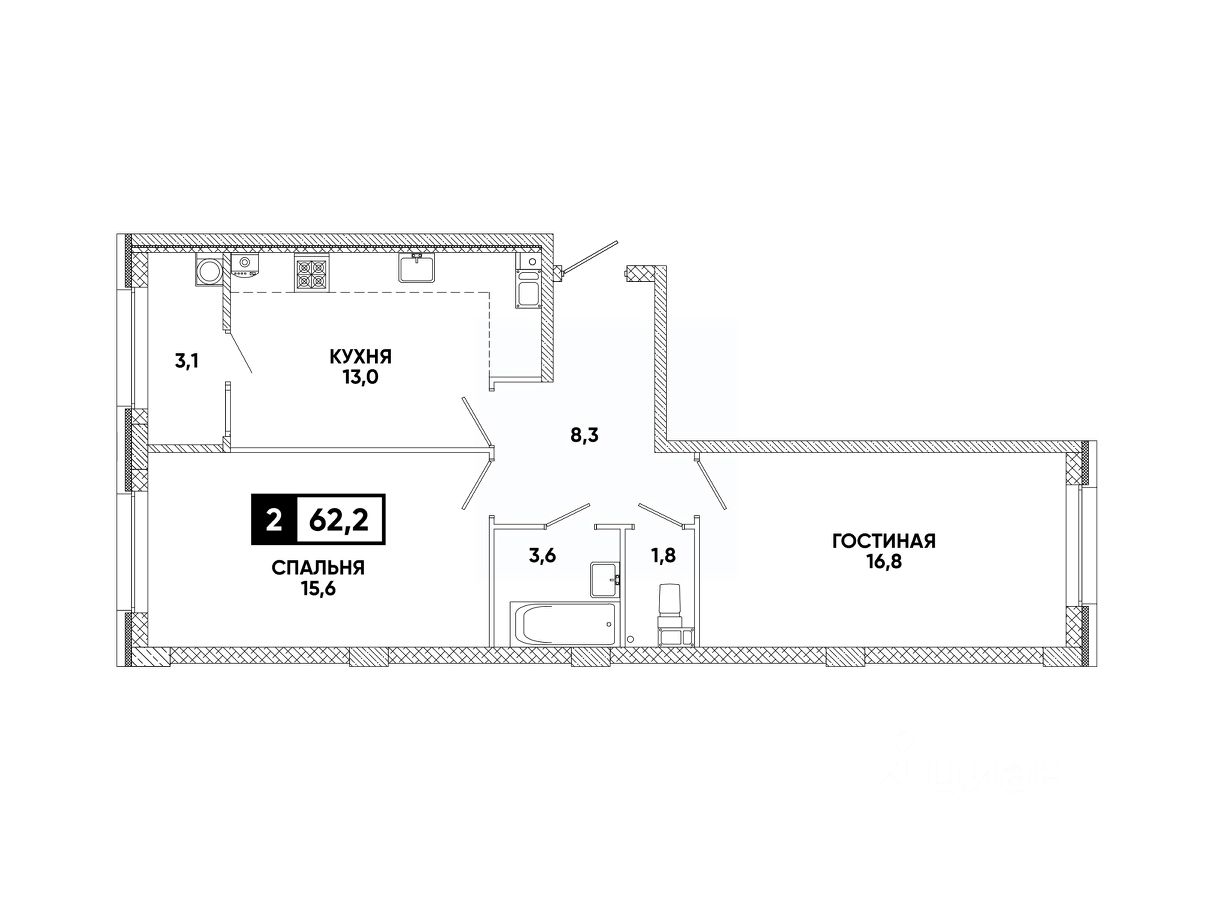 Общая площадь62,2 м²