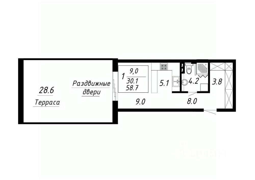 Продается 1-комн. квартира, 58,7 м²