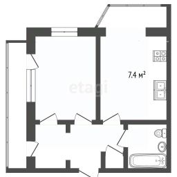 Видовая квартира, расположенная на 9 этаже. Общая площадь 47 кв. м, жилая 31 кв. м. Гостиная - 18,9 кв. м, спальня - 11,9 кв. м, кухня - 7,4 кв. м. Два балкона, общей площадью 10 кв. м. Санузел совмещенный.