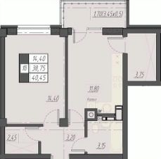 Общая площадь40,45 м²