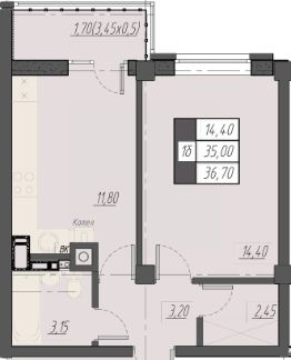 Общая площадь36,7 м²