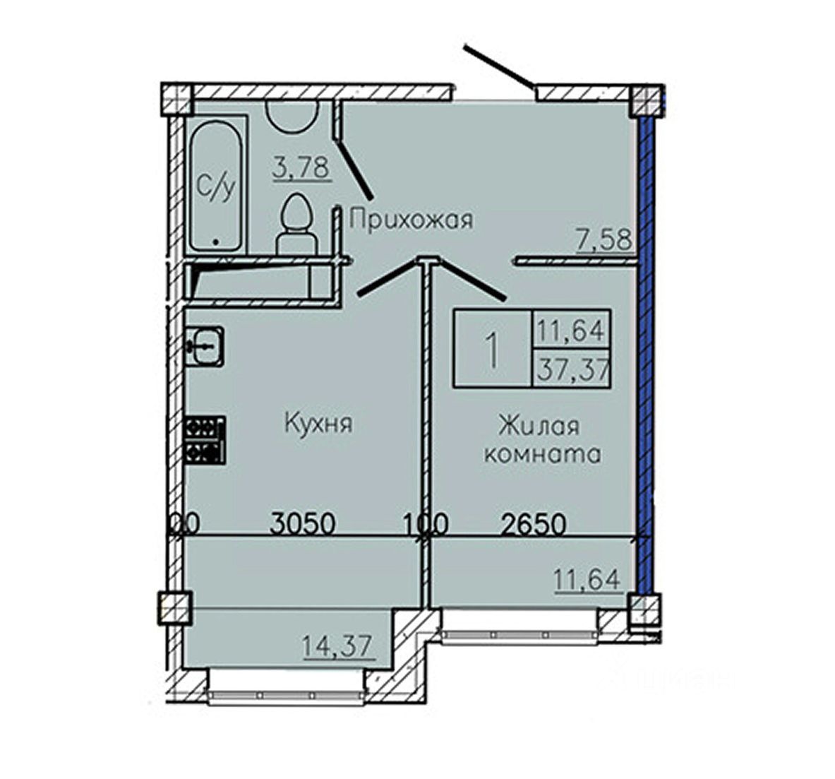 Общая площадь37,37 м²