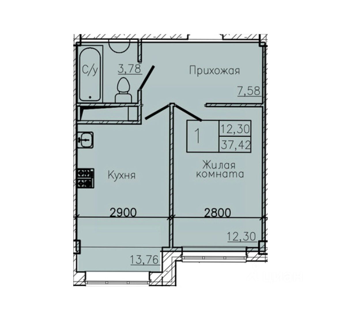 Общая площадь37,42 м²