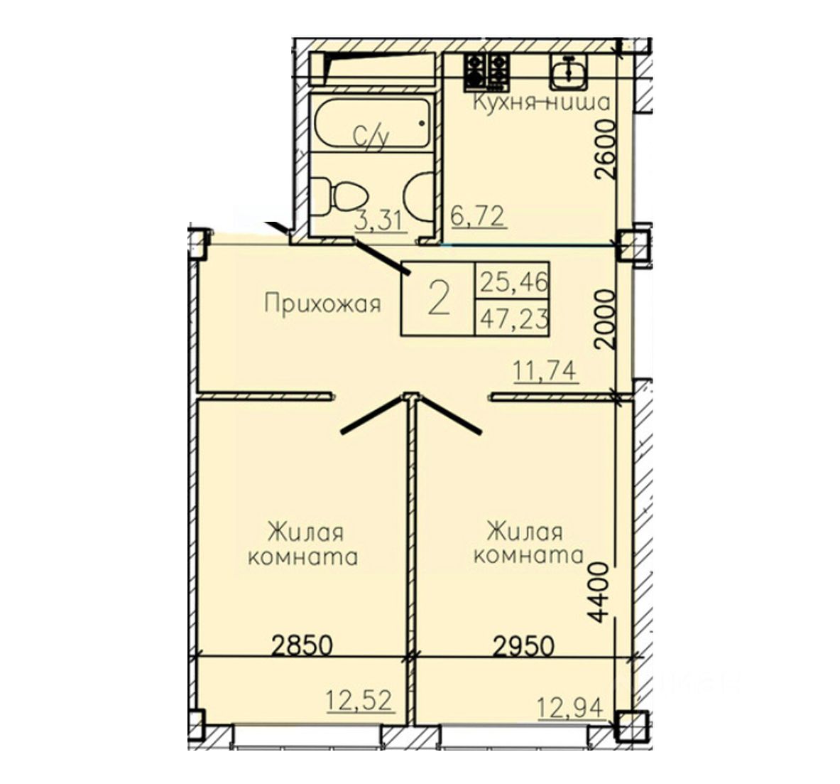 Общая площадь47,23 м²