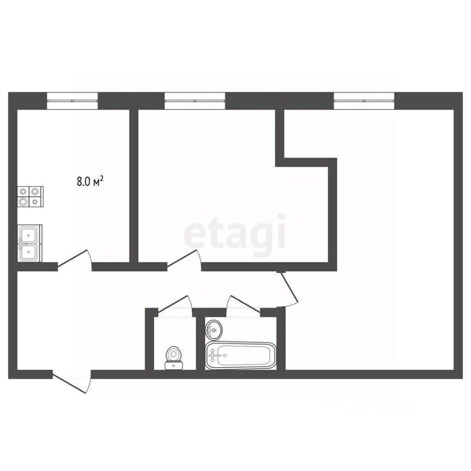 Квартира обладает рациональной планировкой с изолированными комнатами и раздельным санузлом, что обеспечивает комфортное проживание.