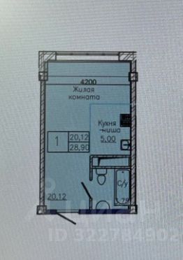 Общая площадь 28.9м2;