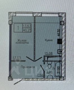 Общая площадь 40.25м 2;