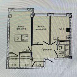Жилая прощать 32. 52м2;