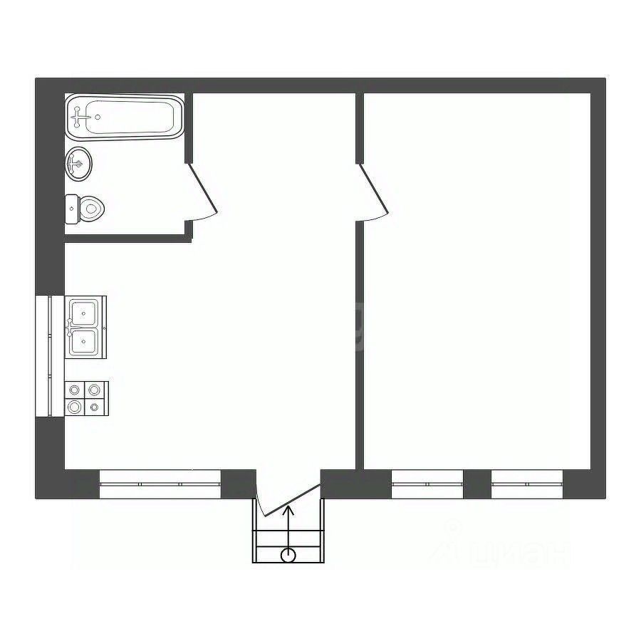 Просторная комната, светлая кухня, санузел совмещенный.