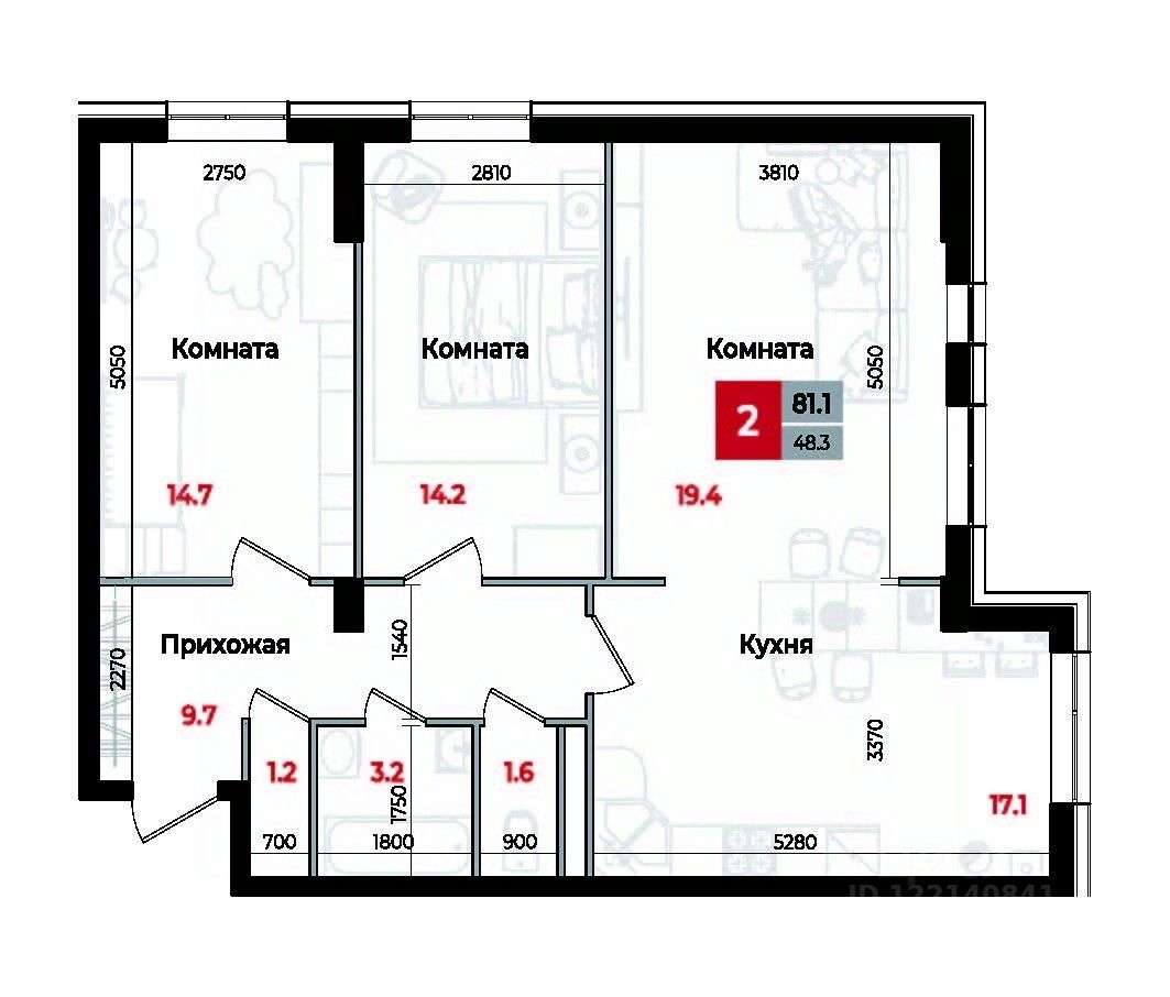 Общая площадь81,1 м²