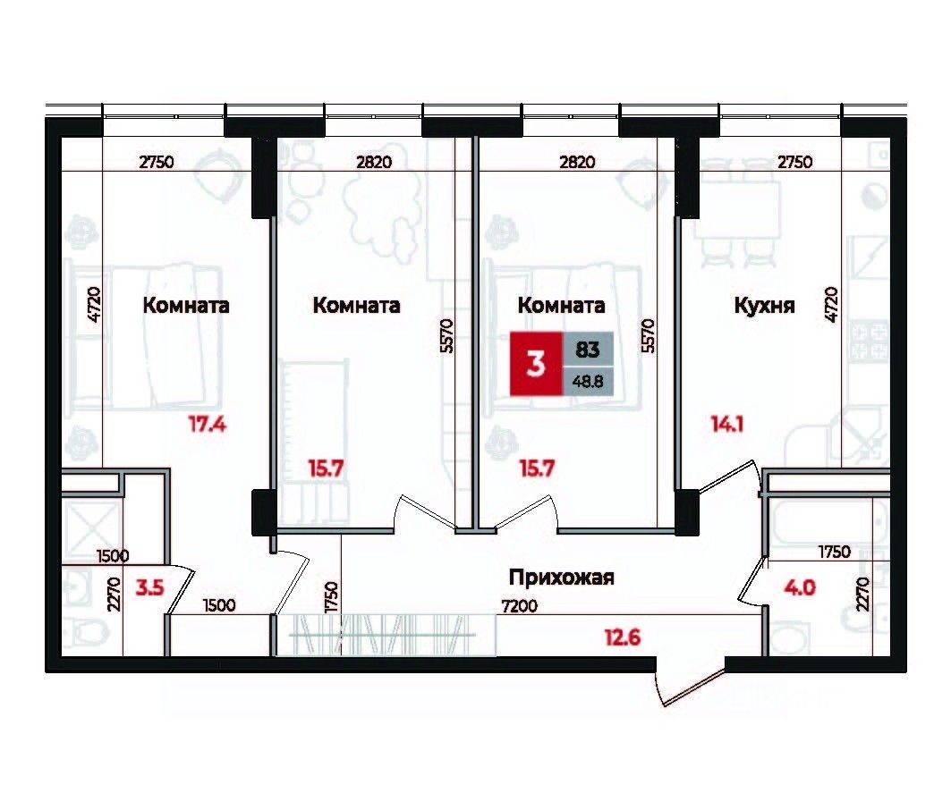 Продаётся 3-комнатная квартира в строящемся доме (Дом 1), срок сдачи: III-кв. 2026, общей площадью 83 кв.м., на 5 этаже. Новый жилой дом от застройщика "СтройКонтинент" расположен по адресу: г. Невинномысск, Новая улица.