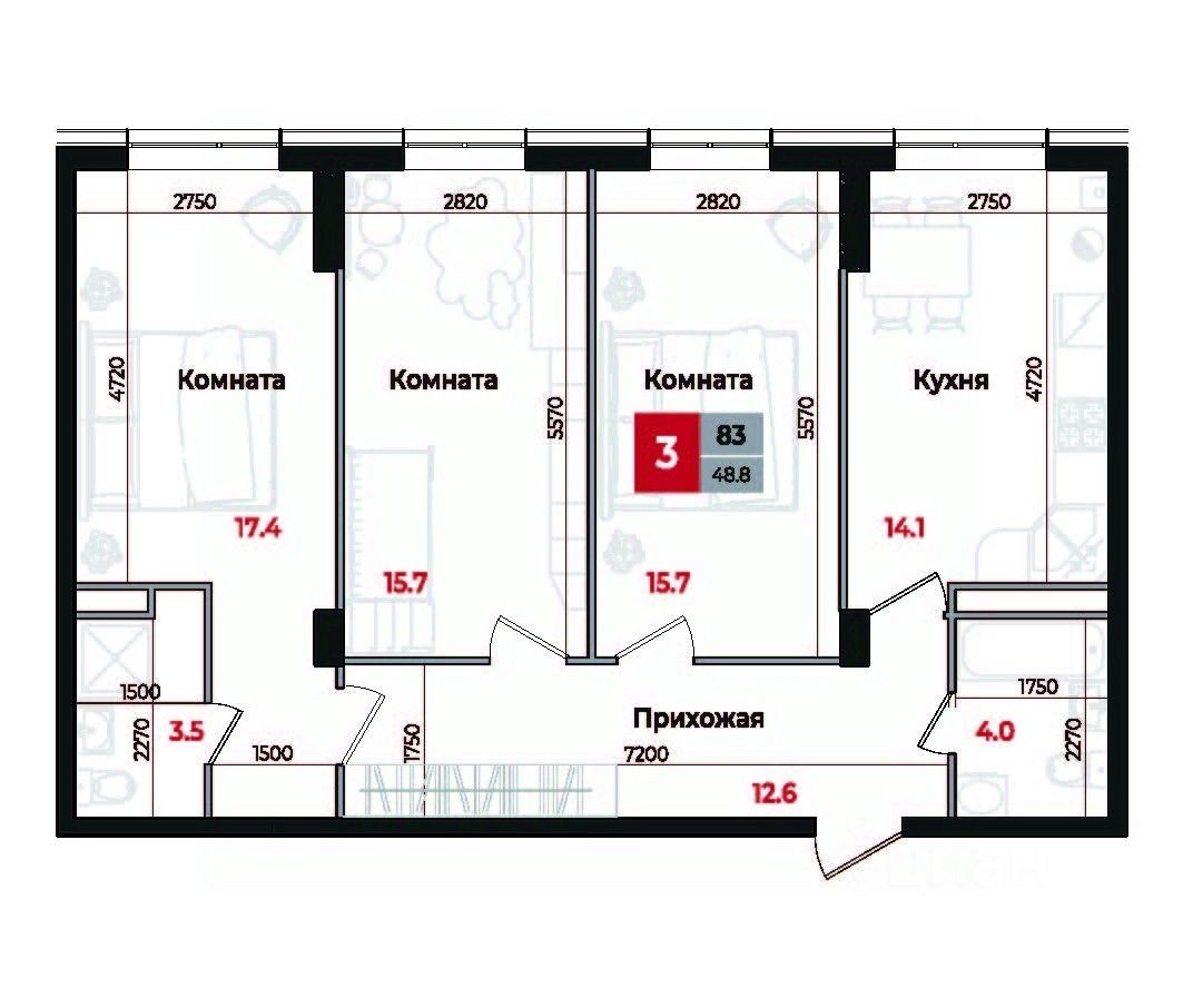Продаётся 3-комнатная квартира в строящемся доме (Дом 1), срок сдачи: III-кв. 2026, общей площадью 83 кв.м., на 6 этаже. Новый жилой дом от застройщика "СтройКонтинент" расположен по адресу: г. Невинномысск, Новая улица.