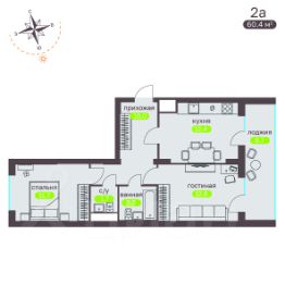 Общая площадь59,5 м²
