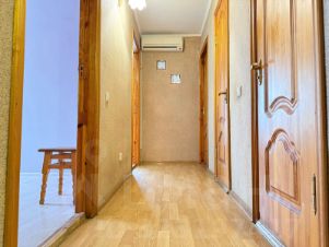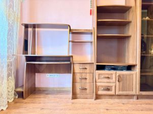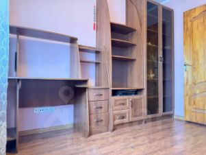 Новому собственнику остается мебель и техника: кухонный гарнитур со встроенной плитой , вытяжкой и духовым шкафом, стол и стулья, корпусная деревянная мебель, кресло, два кондиционера, большой гардеробный шкаф во входной зоне, обувница, прихожая, встроенный шкаф в комнате.