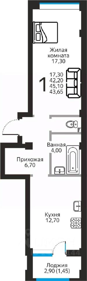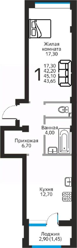 Продаётся 1-комнатная квартира в строящемся доме (поз.1), срок сдачи: II-кв. 2028, общей площадью 43.65 кв.м., на 2 этаже. Новый жилой комплекс "Янтарный" от застройщика "ГИМ Групп" расположен по адресу: г. Ессентуки, улица Фридриха Энгельса.