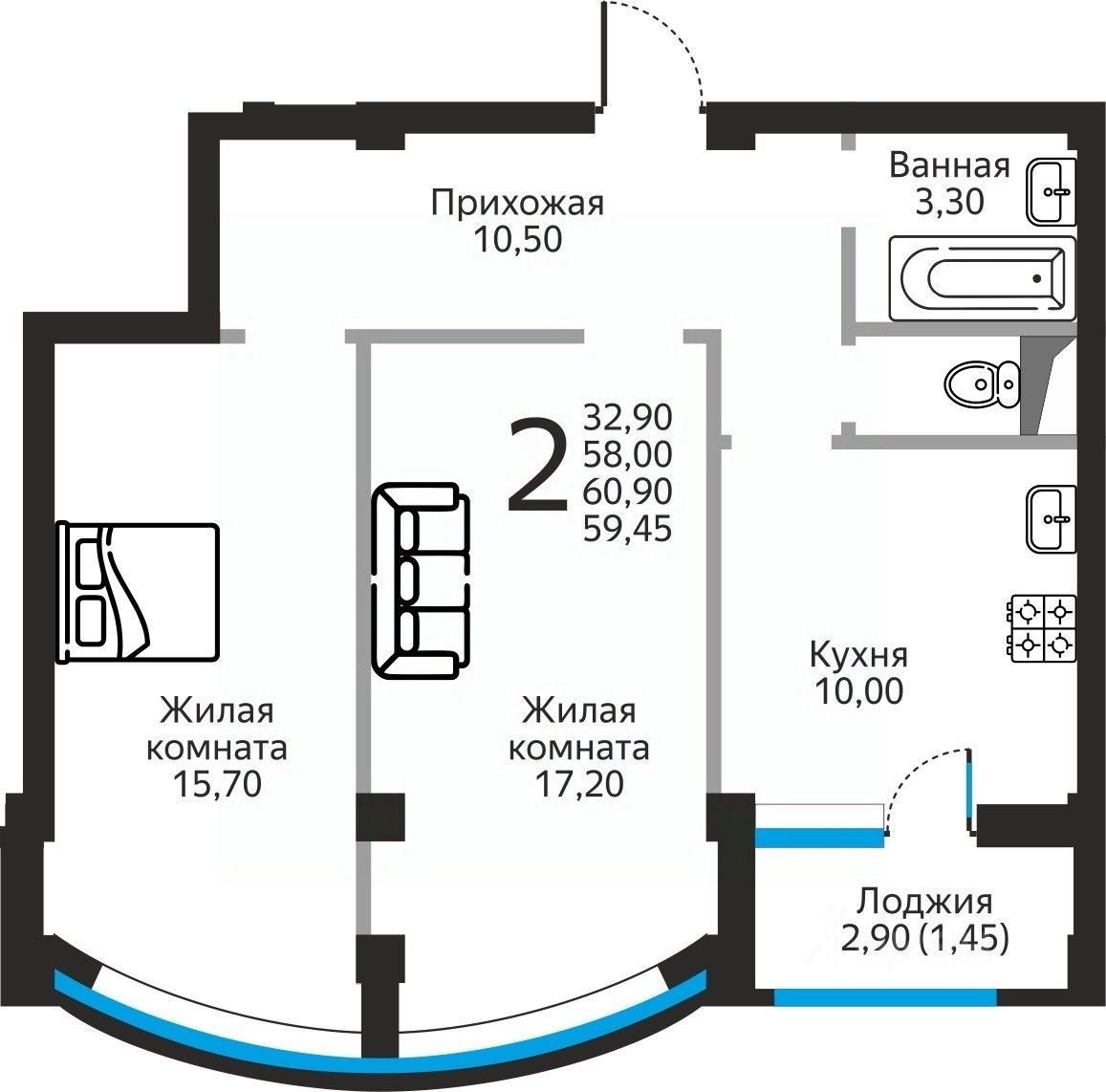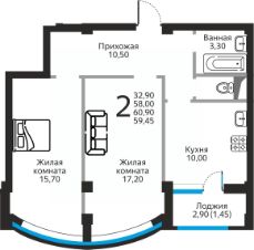 59,45 м²