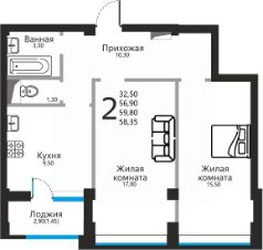 Продаётся 2-комнатная квартира в строящемся доме (поз.1), срок сдачи: II-кв. 2028, общей площадью 58.35 кв.м., на 5 этаже. Новый жилой комплекс "Янтарный" от застройщика "ГИМ Групп" расположен по адресу: г. Ессентуки, улица Фридриха Энгельса.