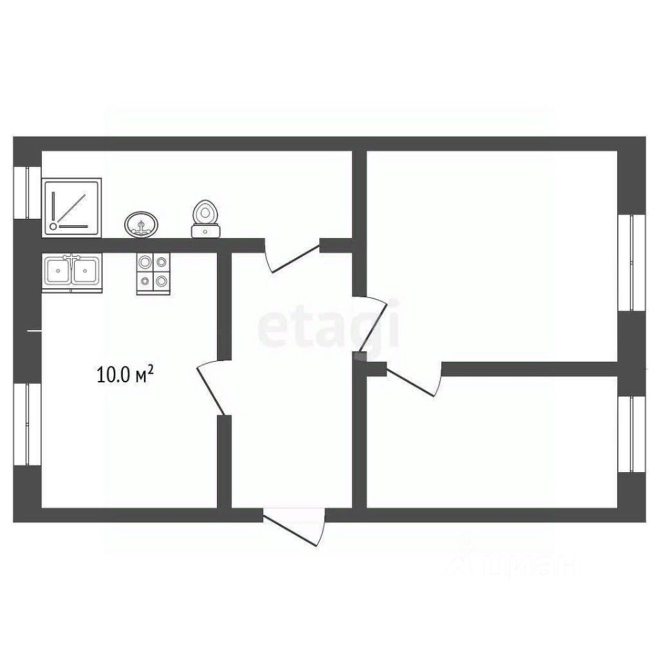 В квартире 2 смежные комнаты. Гостиная - 20 кв. м, спальня 13 кв. м. Площадь кухни - 10 кв. м. Санузел совмещенный. Душ.