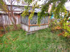 К квартире прилагается небольшой кусок земли с беседкой и сарай.
