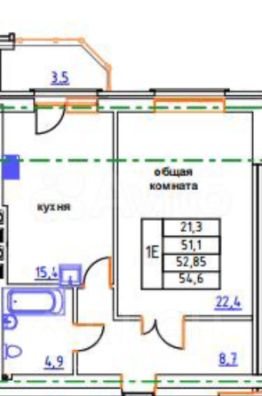Квартира удачной планировки, в коридоре есть много места для гардеробной, возможно комфортное зонирование жилой комнаты, а большая площадь кухни позволяет использовать ее как гостиную. окна смотрят во двор.