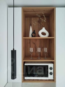 Техника: стирально-сушильная машина, встроенный холодильник, газовая плита с электроподжигом, микроволновая печь, электрический полотенцесушитель, смеситель с возможностью установки фильтра.