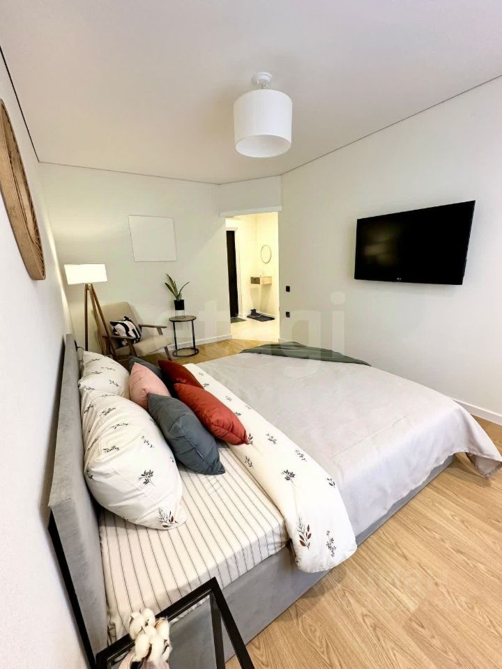 В продаже однокомнатная квартира с современным новым ремонтом и улучшенной планировкой. В квартире одна изолированная комната, кухня, совмещенный с/у и гардеробная. Остается вся мебель и техника. Ремонт делали для себя из качественных материалов. Есть застекленная лоджия с теплым полом, индивидуальное газовое отопление.