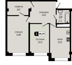 Общая площадь68,29 м²