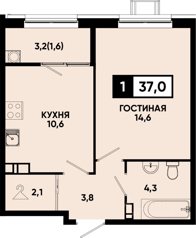 Общая площадь37 м²