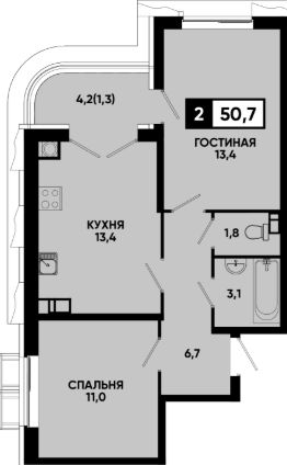Общая площадь50,7 м²