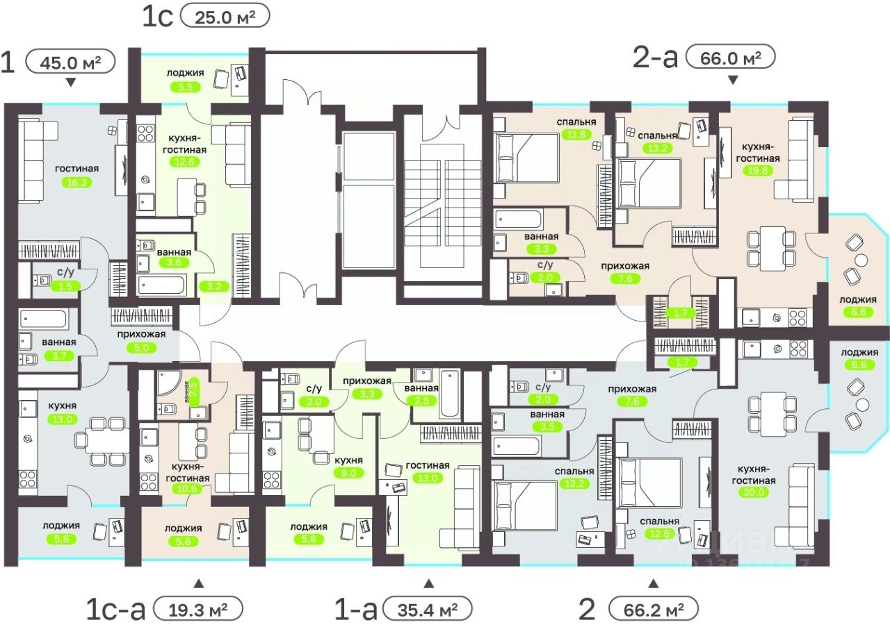 Общая площадь66,2 м²