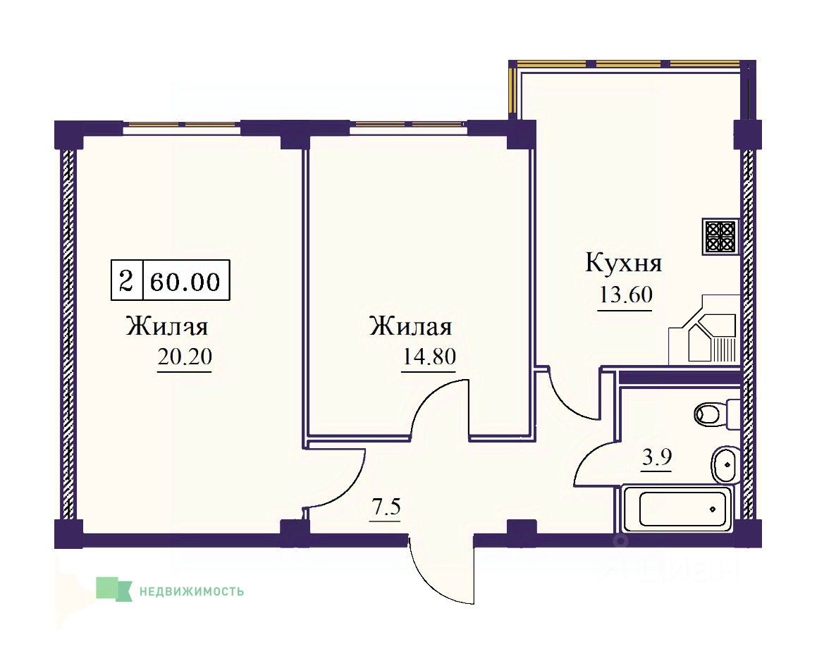 Общая площадь60 м²