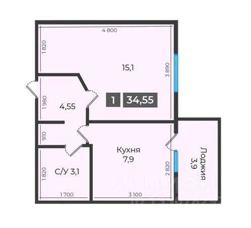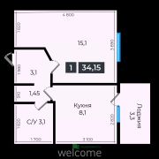 Общая площадь34,75 м²