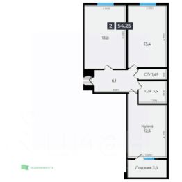 Продается 2-комн. квартира, 54,25 м²