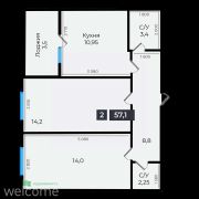 Общая площадь57,1 м²