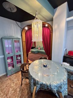В этой квартире вы найдёте множество уникальных элементов, начиная с подборки антиквариата и заканчивая ручной росписью стен и картиной, написанными лично хозяйкой этого объекта.