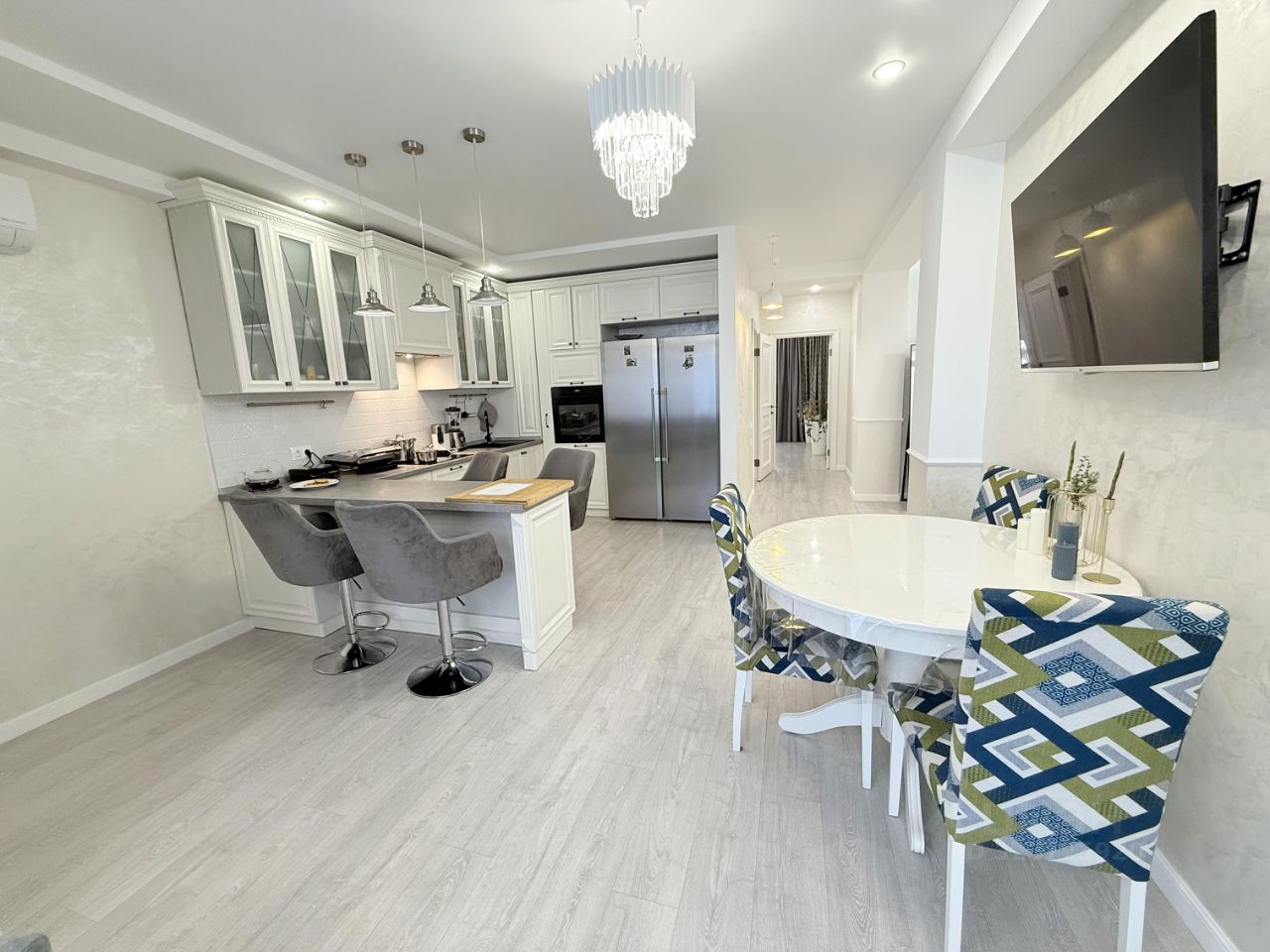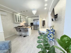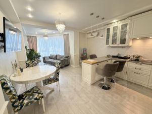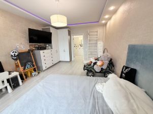 - Интерьер квартиры выполнен по индивидуальному дизайнерскому проекту, благодаря чему каждая комната выглядит стильно и уютно. Санузел совмещённый, что является удобством для многих покупателей.